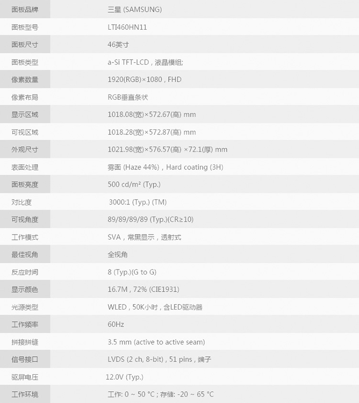 面板壽命            above 50000小時