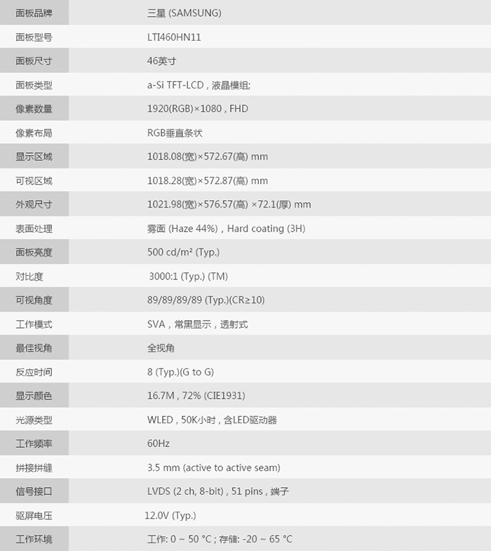 液晶屏尺寸 46寸TFT真彩液晶屏