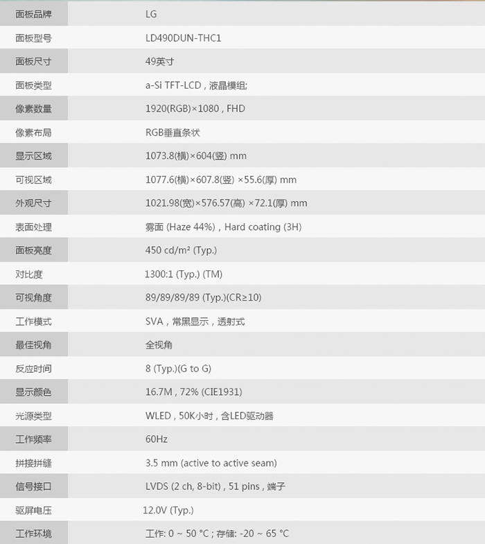 液晶屏尺寸 49 寸TFT真彩液晶屏