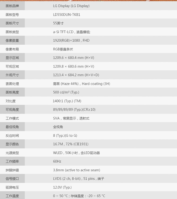 液晶屏尺寸 55 寸TFT真彩液晶屏