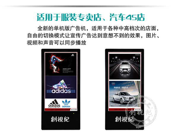 對比性 | 看家本領: ★成本低,能滿足常規的廣告機播放功能; ★高清1080P視頻、圖片播放; ★一鍵拷貝節目、支持 HDMI接口輸入,可當顯示器之用。不足之處:豎屏片源需要第三方軟件制作、剪輯。分屏制作繁瑣。 | 看家本領: ★解決客戶橫豎屏轉換問題,可自動對應機器旋轉視頻; ★內置4G內存,烤貝快、播放穩定、永不卡殼; ★真正客戶自由分屏,真正的實現視頻,圖片,字幕,日期的隨機組合;想怎么分就怎么分; ★目前唯一能真正實現節目之間的無縫切換的方案; ★疊加背景圖片,使畫面更美觀; ★雙芯片、真正1080P的全高清解碼;目前只有我們和分眾傳媒使用此方案。 | 看家本領: ★遠程控制、管理、下發節目; ★兼容更多格式,天氣預報等,內容豐富,操作so easy! ★后臺軟件功能強大,關鍵點是穩定,支持同時上萬終端在線; ★隨機搭配服務器安裝軟件; ★擴展性強、可安裝任意APP,滿足你的任何任性; ★支持阿里云服務器,強大的技術支持。真正的廣告媒體運營最佳選擇,穩定壓到一切。不足之處:暫時沒有(這個可以有,這個真沒有...) |