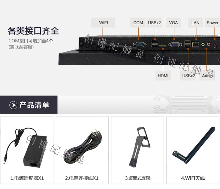 :電源x1 / USBx4 /網口x1 /音頻x2 / HDMIx1 / VGAx1 / COMx1(可擴展至4)