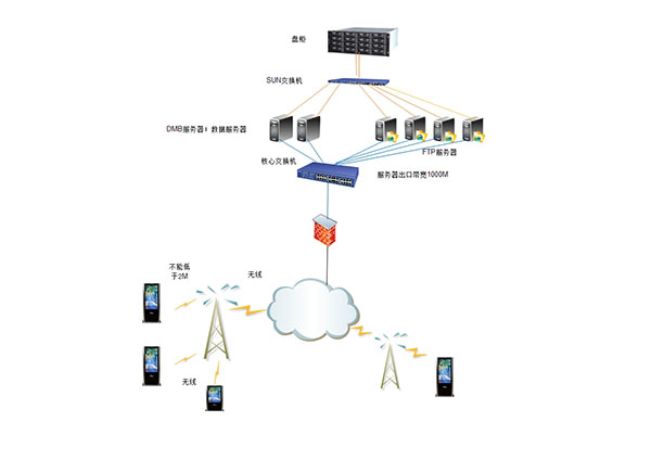 服務器群架設在總部網絡管理中心,采用先進的B/S管理架構,對各種信息播放媒介進行管理、控制、監控及下發各種多媒體信息。