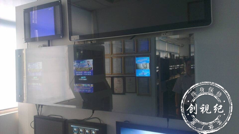 近日,深圳梅塞德斯科技有限公司----創(chuàng)視紀(jì)廣告機(jī)樣品間,又新增一位成員----15寸鏡面廣告機(jī)。鏡面廣告機(jī)也稱魔鏡廣告機(jī),是由專業(yè)的顯示玻璃和廣告機(jī)組成,魔鏡玻璃是采用真空磁控反應(yīng)濺射先進(jìn)工藝,在玻璃表面通過(guò)鏡面反射處理,鏡面玻璃在無(wú)背光源情況下形成鏡面效果,作為鏡子使用;在有背光源情況下,透出清淅的畫面圖像。