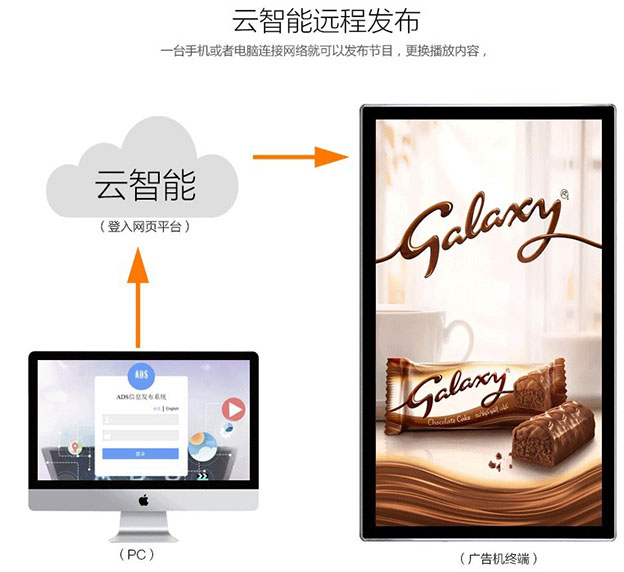 現(xiàn)在也有一些被成為智能標牌的商用廣告機,內(nèi)部嵌入了媒體播放器,這樣一來可以免除外部媒體播放器的成本,并且簡化了安裝并降低了數(shù)字標牌項目的持續(xù)運營成本,同時由于免除了外接線纜,從而可以更大限度地減少可能發(fā)生故障的隱患點